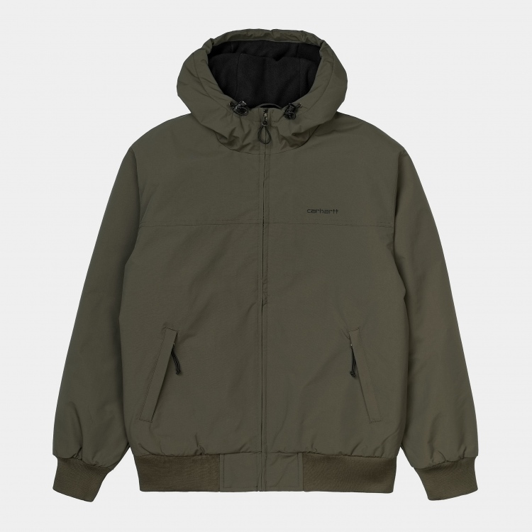 Die Carhartt WIP Hooded Sail Jacket aus wasserabweisenden Stoff mit Teflon-Beschichtung und Fleecefutter ist die perfekte Jacke für schlechtes Wetter.