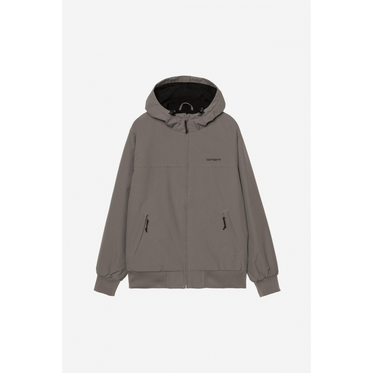 Die Carhartt Hooded Sail Jacket aus Nylon kommt mit einem wasserabweisendem Teflon-Gewebe, ist mit Fleece gefüttert, und bietet eine verstellbare Kapuze, Rippstrickbündchen an Ärmeln und Saum sowie einem Verschluss vorne mit Reißverschluss. Die Stickerei mit Schriftzug rundet den Look ab.