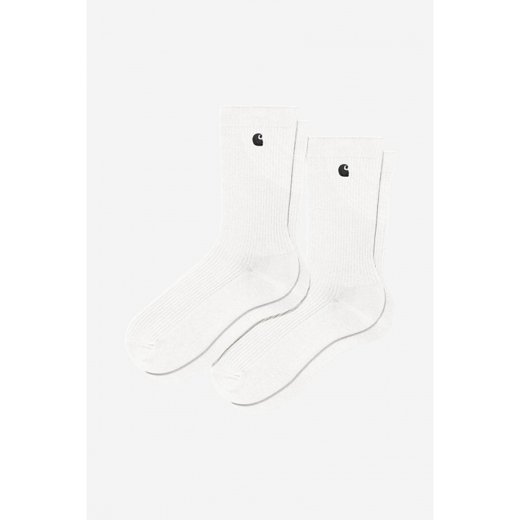 Die Madison Pack Socks von Carhartt WIP besteht aus 83/15/2%Baumwolle/Polyester und Elastan und überzeugt durch ihre angenehme, leicht strukturierte Haptik. Das Modell verfügt über anatomische Reibung am oberen ende und einem gestricktem Carhartt-Logo an der Seite.