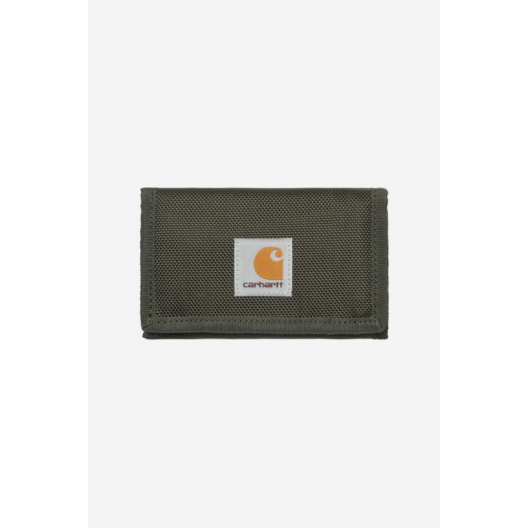 Das Prescott Wallet von Carhartt besteht aus einem schweren Nylon-Stoff mit wasserabweisenden Fähigkeiten. Das Wallet wird dreimal gefaltet und mit einem Klettverschluss geschlossen dazu hat es Fächer für Geldscheine, Münzen und sechs Karten. Auf der Vorderseite befindet sich ein gewebtes Square Label was das Design abrundet.