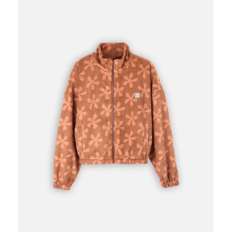 Bedruckte Fleecejacke mit durchgehendem Reißverschluss und zwei