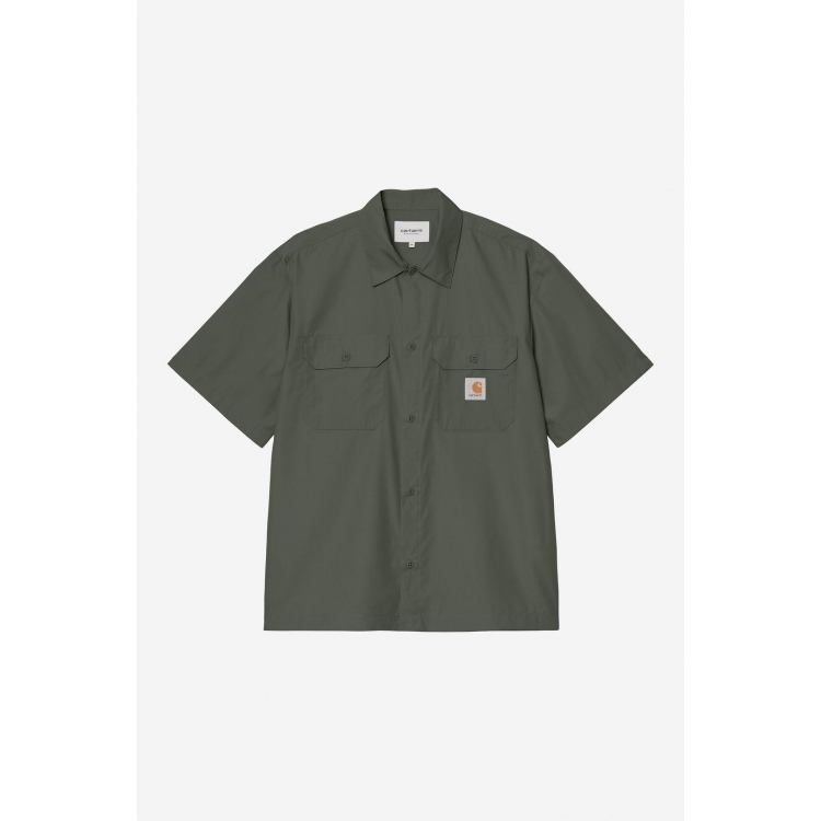 Das S/S Craft Shirt von Carhartt besteht aus 65% Polyester und 35% Baumwolle und ist mit einer Rückenfalte versehen. Das Shirt besitzt Zwei Brusttaschen mit Klappen und knöpfen dazu befindet sich auf der linken Brusttasche ein Square Label mit Script Logo was das Design abrundet.