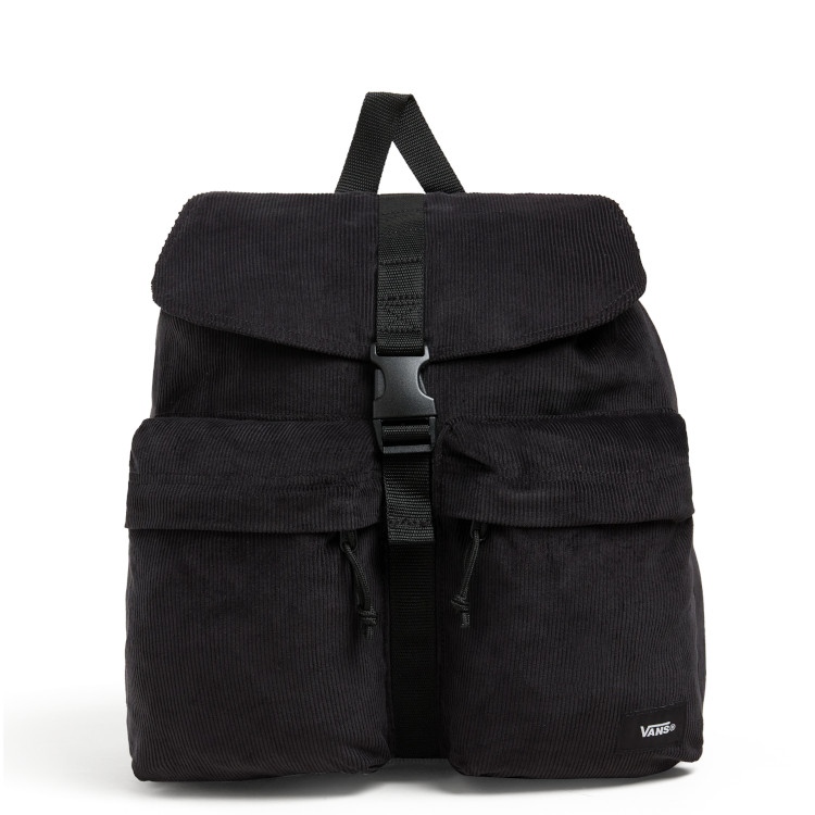 Der Vans Scatter Backpack aus Baumwolle bietet eine Klappe mit Clipverschluss und innerem Kordelzug, einen innenliegenden Schlüsselclip, eine Reißverschlusstasche vorne unten sowie eine seitliche Reißverschlusstasche. Die verstellbaren Schultergurte runden den Look ab.