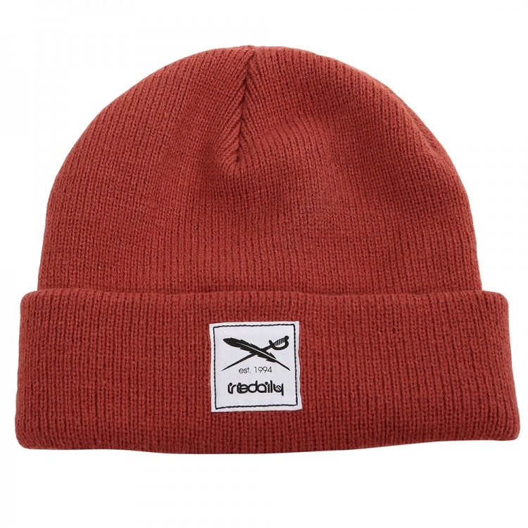 Die vegane IRIEDAILY Smurpher Heavy Beanie aus zweilagigem Feinstrick kommt mit Krempe und gewebten Flag Logo.