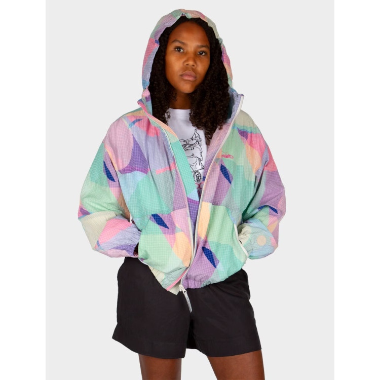 Die Stohead Crushy Jacket besteht aus 100% recyceltes Nylon und das Futter aus 100% recyceltes Polyester von iriedaily. Die Jacke hat ein Pinselstrich Muster mit Farbverläufen die von einer Abbildung einer echten Leinwand des Künstlers Stohead handelt. Der Allover-Druck rundet das Design ab.