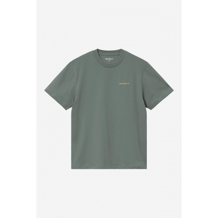 Das W' S/S Script Embroidery T-Shirt aus 100% Baumwolle von Carhartt ist kurzärmlig und wertet mit einem gestickten Script Logo das Design auf.
